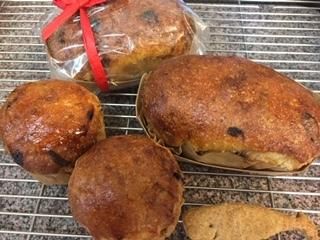 ゆっくり発酵して膨らませたケーキに型抜きクッキーを乗せて焼いています。バースディケーキにいかがですか。